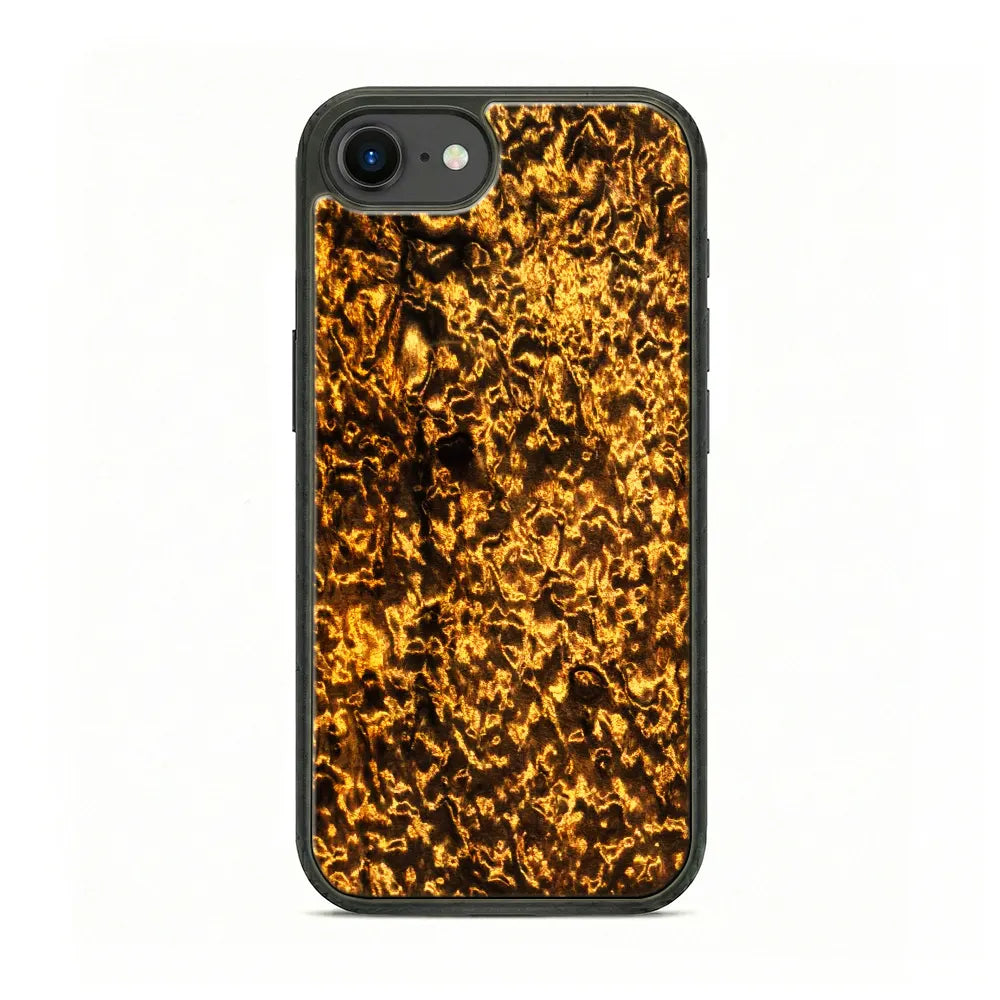 Crafted from natural Golden Phoebe wood, featuring a unique water ripple grain with a natural golden luster. The case boasts a sleek black bezel design that hugs your phone perfectly, delivering a sophisticated look and premium feel.